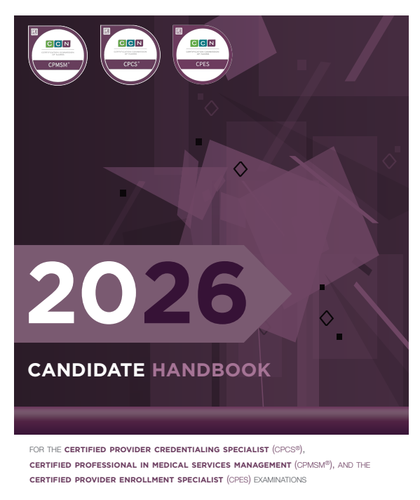 The 2026 Candidate Handbook, developed by the Certification Commission of NAMSS (CCN) has everything you need to know about earning and maintaining the Certified Provider Credentialing Specialist (CPCS®), Certified Professional in Medical Services Management (CPMSM®), and Certified Provider Enrollment Specialist (CPES) credentials.